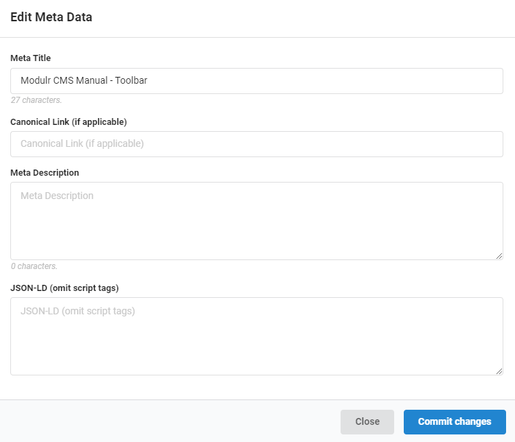 - Once in Edit Mode, hover over the toolbar ⇒ select Meta Data